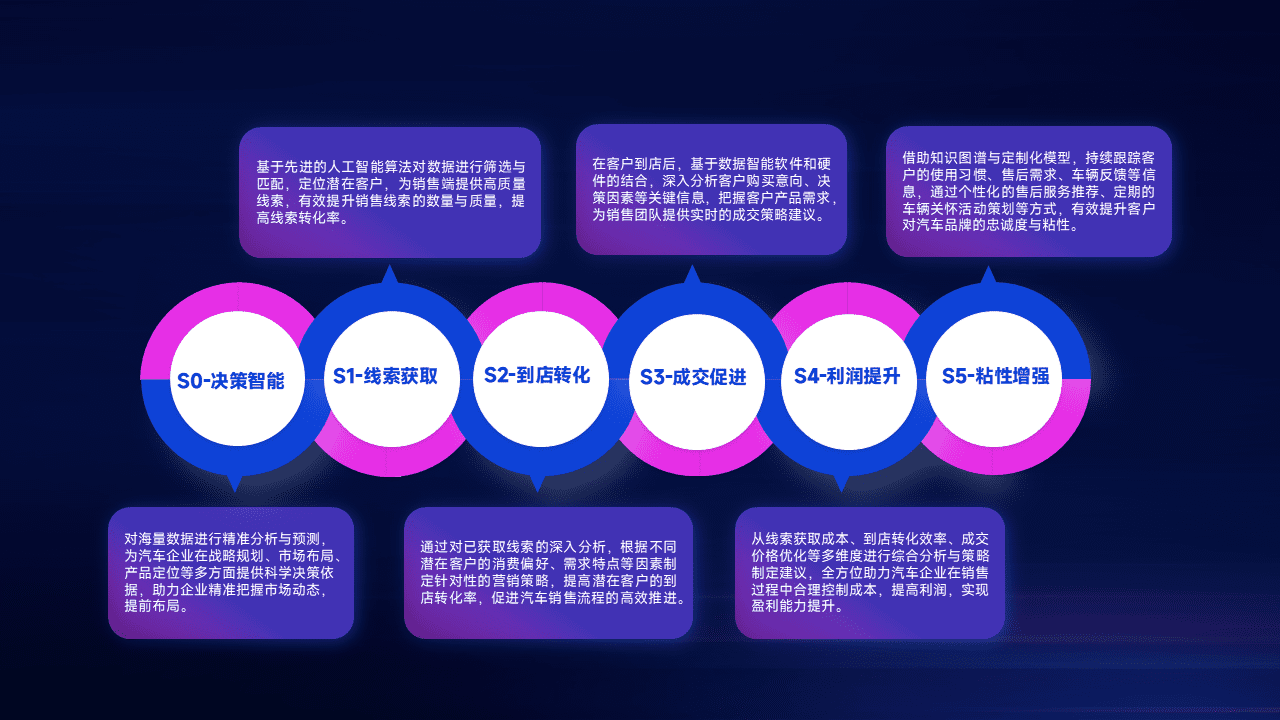 通过拓宽潜在客户来源、、优化线索分配并提高到店转化率,,以增强销售效率。。。同时,,,利用线索数据不断优化分析模型,,,有效提升转化率,,扩大营销影响力。。。